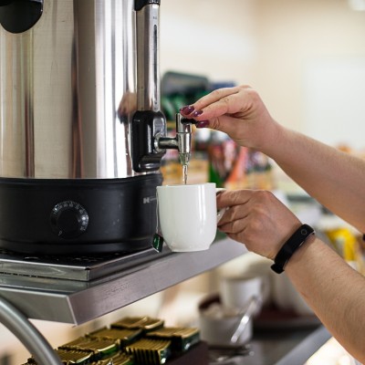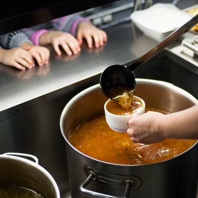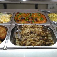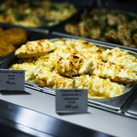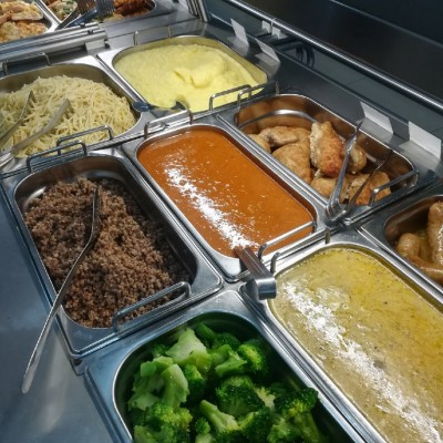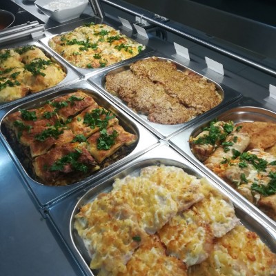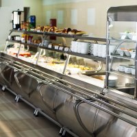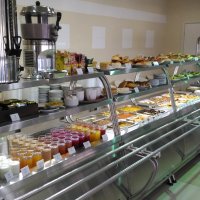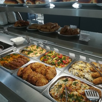 Линия раздачи в кафе "Новый город" работает в будние дни с 10.00 до 16.00
