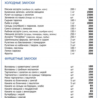 Корпоративное мероприятие, юбилеи - от 2500 руб/чел, включая плату за обслуживание.